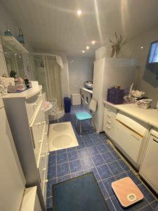 Vous trouverez au rez-de-chaussée une entrée, une pièce de vie, une cuisine aménagée et équipée, une chambre, une salle de douches