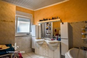 Vous trouverez au RDC: un hall d'entrée spacieux, un séjour de 30m2, une cuisine équipée de 23m2 et une salle de bains équipée (douche et baignoire d'angle).