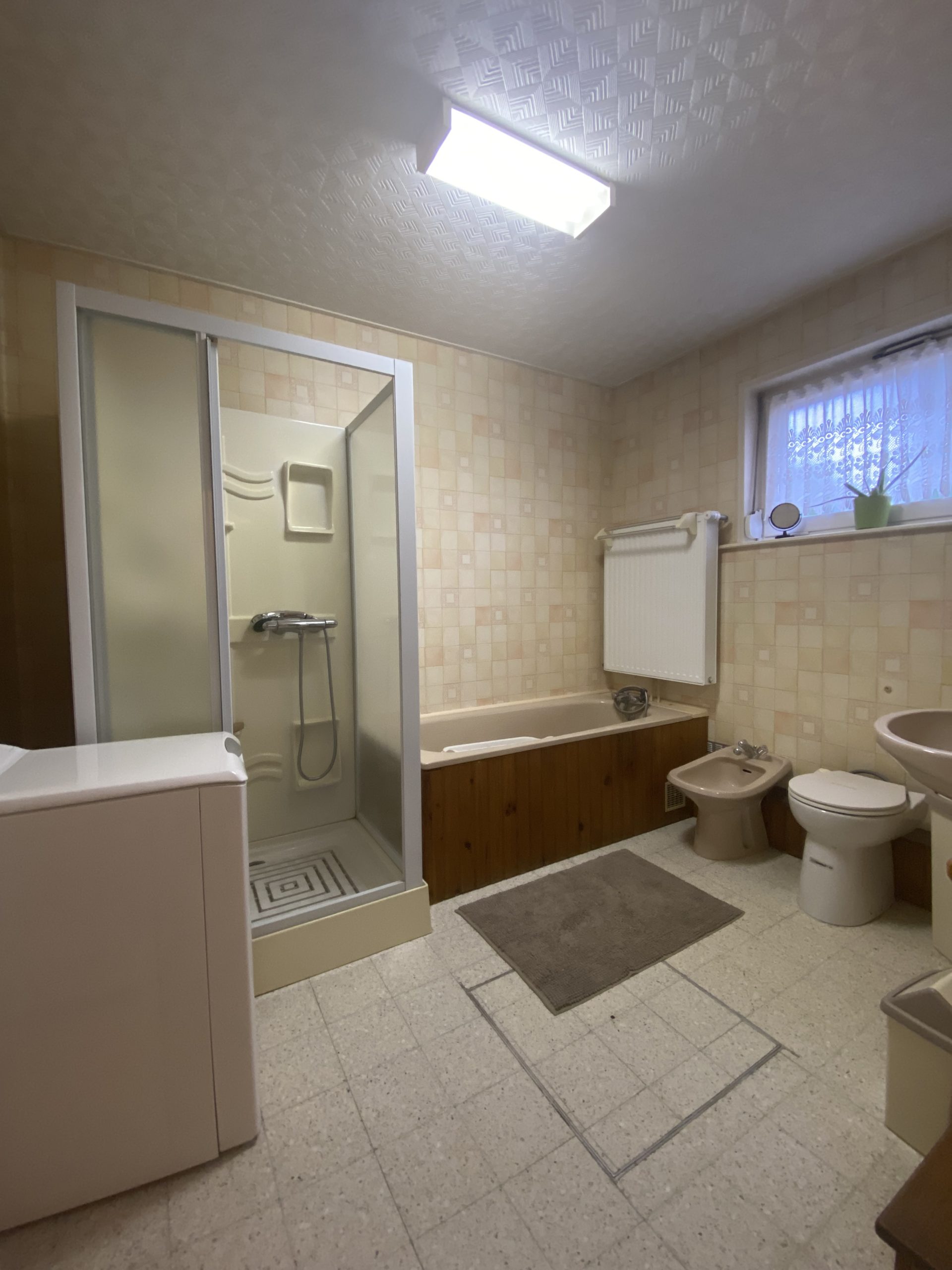 Vous trouverez au RDC : un hall d'entrée avec coin vestiaire, un salon-séjour, une grande cuisine aménagée et équipée, une salle de bains et un WC séparé avec lave-mains.