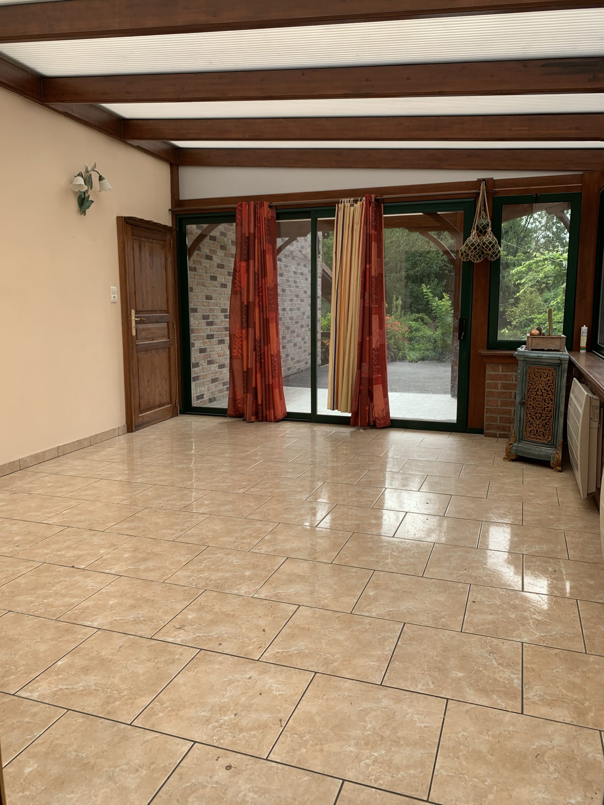 Vous trouverez : un salon-séjour, une cuisine aménagée, un coin repas, une buanderie avec WC séparé et une véranda.