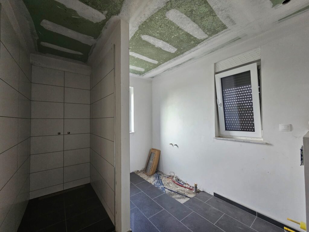 – Salle de bains à l’étage, avec douche à l’italienne, espace prévu pour une baignoire, un double vasque et un WC (à poser),